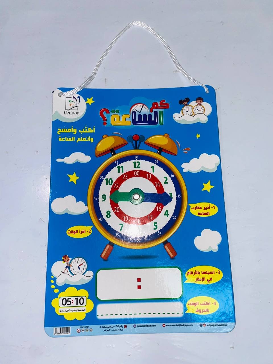 منتج ممتع وهادف يساعد الأطفال على تعلم قراءة الوقت بطريقة سهلة وتفاعلية، حيث يجمع بين الكتابة والمسح والتطبيق العملي.