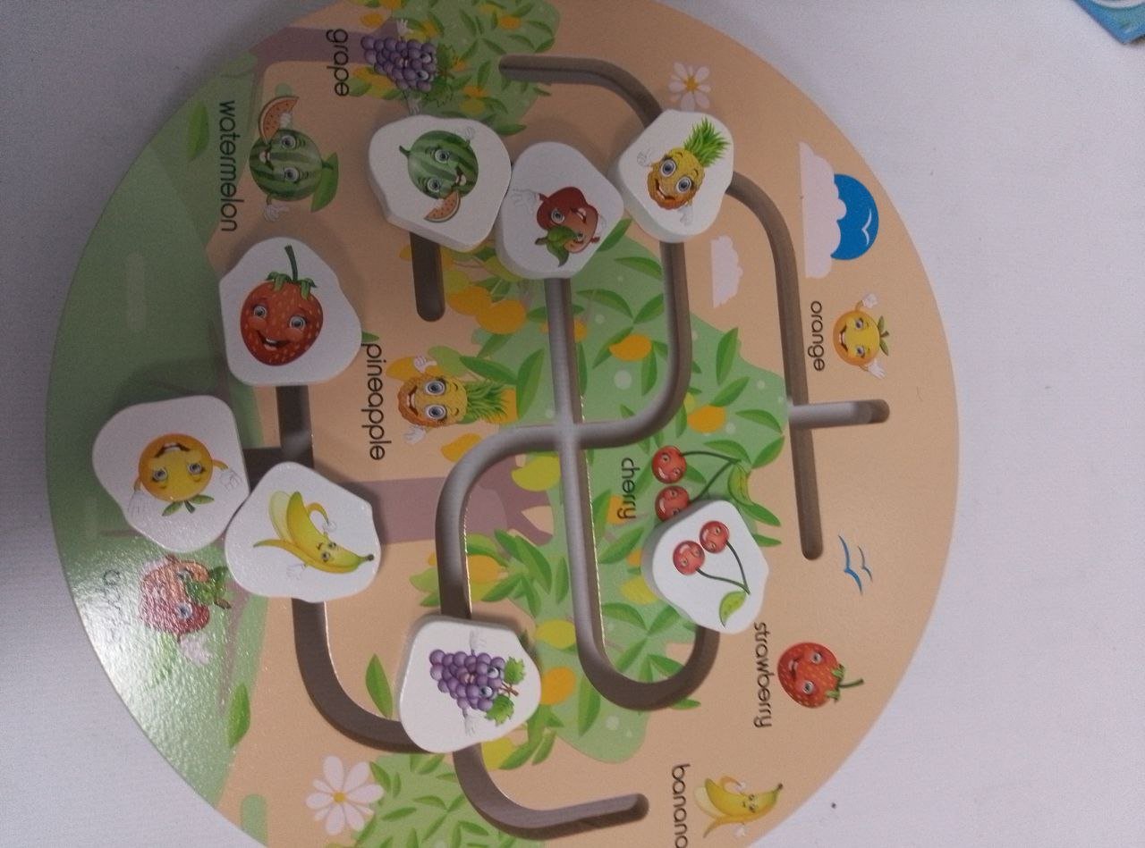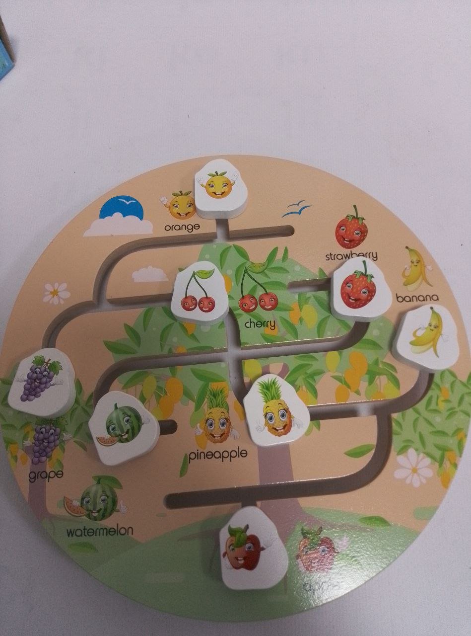 اكتشف وطابق: مهمة طفلك هي اكتشاف موقع كل فاكهة وإيجاد الطريق الصحيح عبر المتاهة لإعادته إلى "شكله" المطابق له.