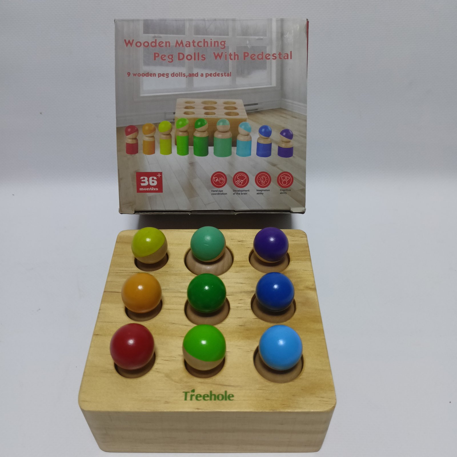 Wooden Matching Peg Dolls with Pedestal – دمى خشبية للمطابقة مع قاعدة