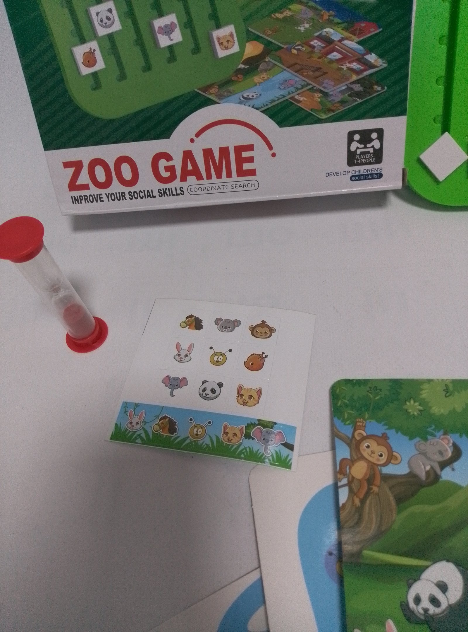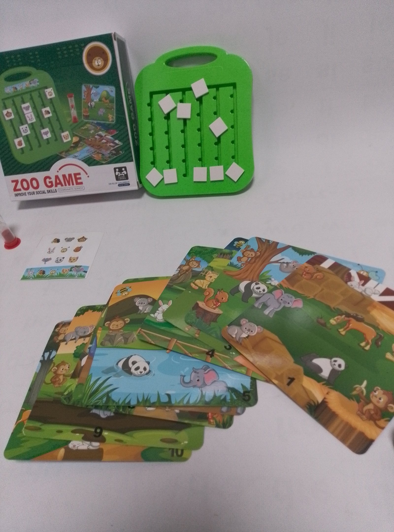 Zoo Game هي لعبة ذكاء ممتعة تعتمد على البطاقات والتنسيق بين مواقع الحيوانات على اللوحة. تساعد الأطفال على تطوير التركيز، الملاحظة، والقدرة على تتبع التعليمات بطريقة بسيطة وشيّقة.