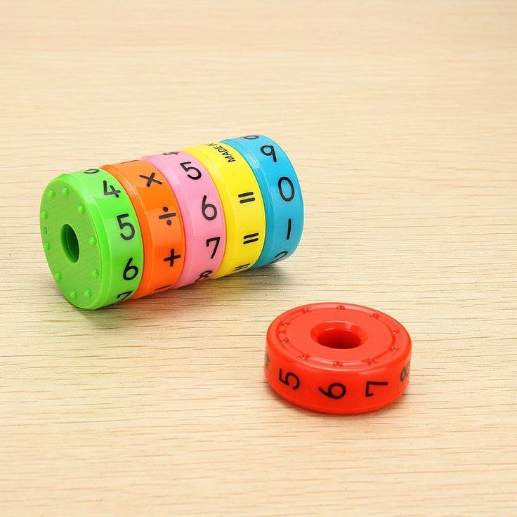 6 في 1: أسطوانة واحدة تجمع بين الأرقام (0-9)، ورموز العمليات الحسابية (+, -, ×, ÷)، ورموز المقارنة (=, >, <).