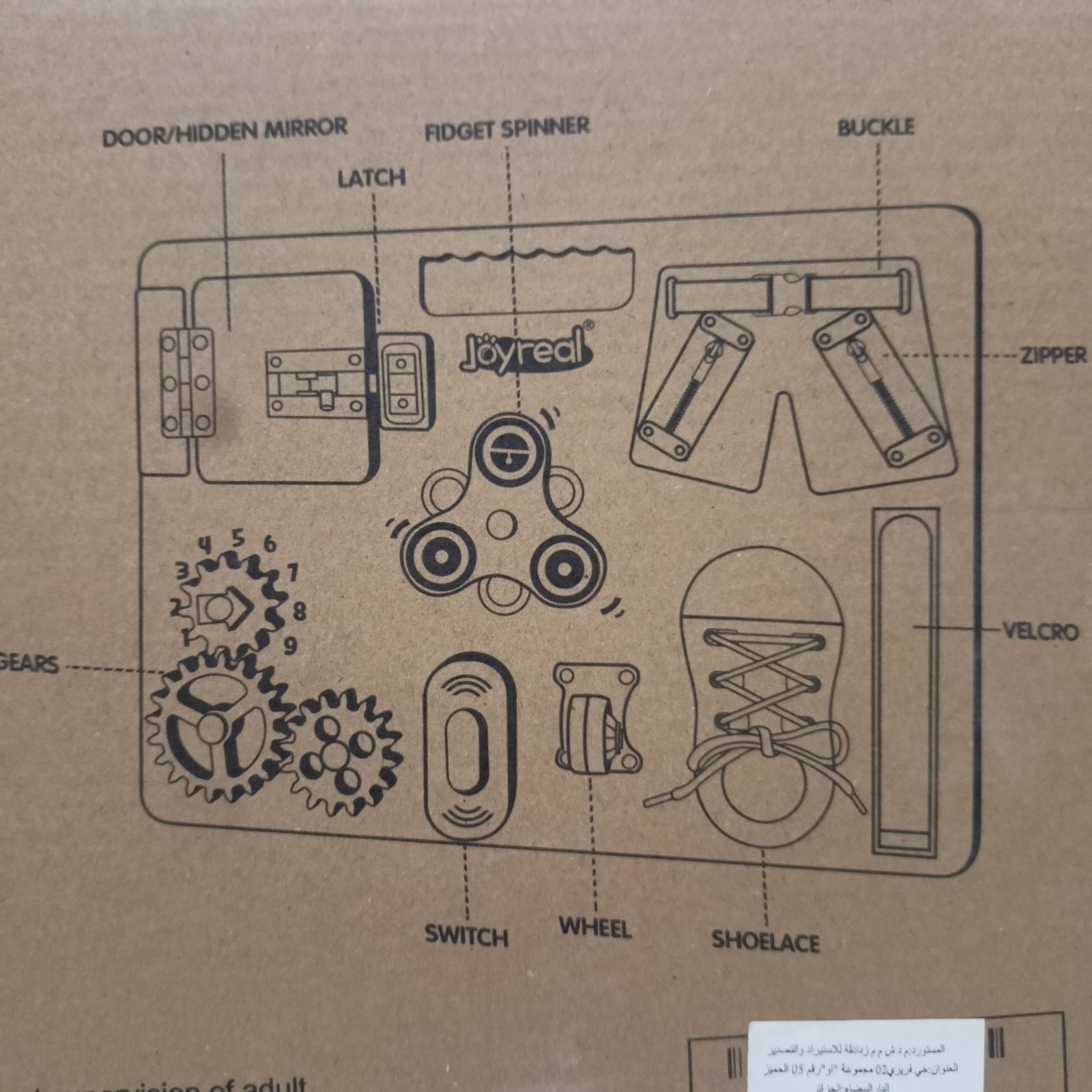 مصممة للأطفال ابتداءً من عمر 18 شهرًا، تحتوي على أنشطة عملية مثل التروس والمقابض والأقفال.