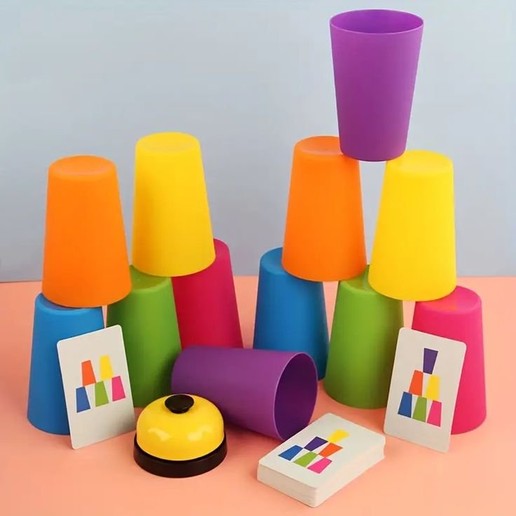 يستلم اللاعبون بطاقات عليها رسومات ملوّنة، والمطلوب هو ترتيب الكؤوس بسرعة: إما فوق بعضهم أو جنب بعضهم — حسب ما هو ظاهر في البطاقة.