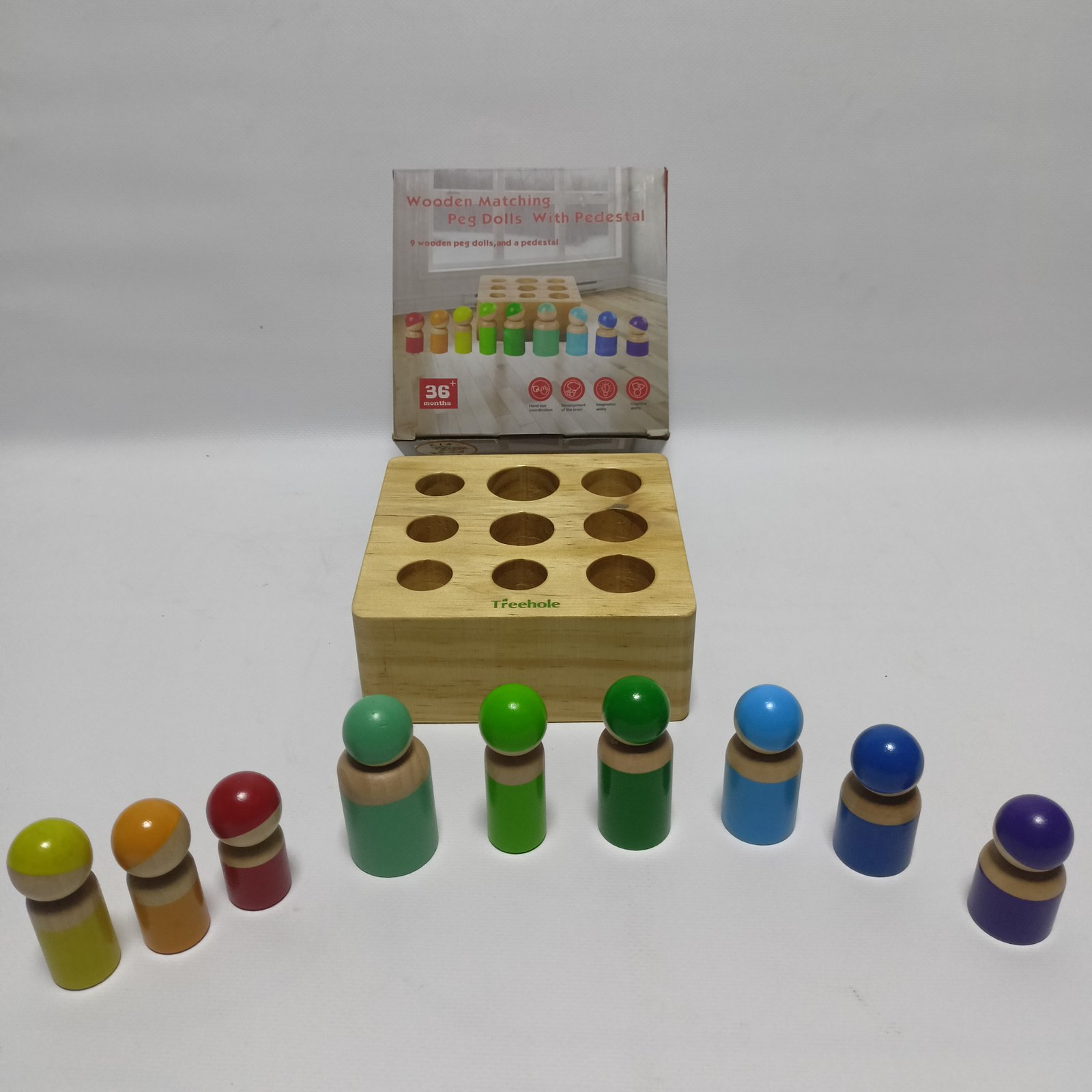 Wooden Matching Peg Dolls with Pedestal – دمى خشبية للمطابقة مع قاعدة
