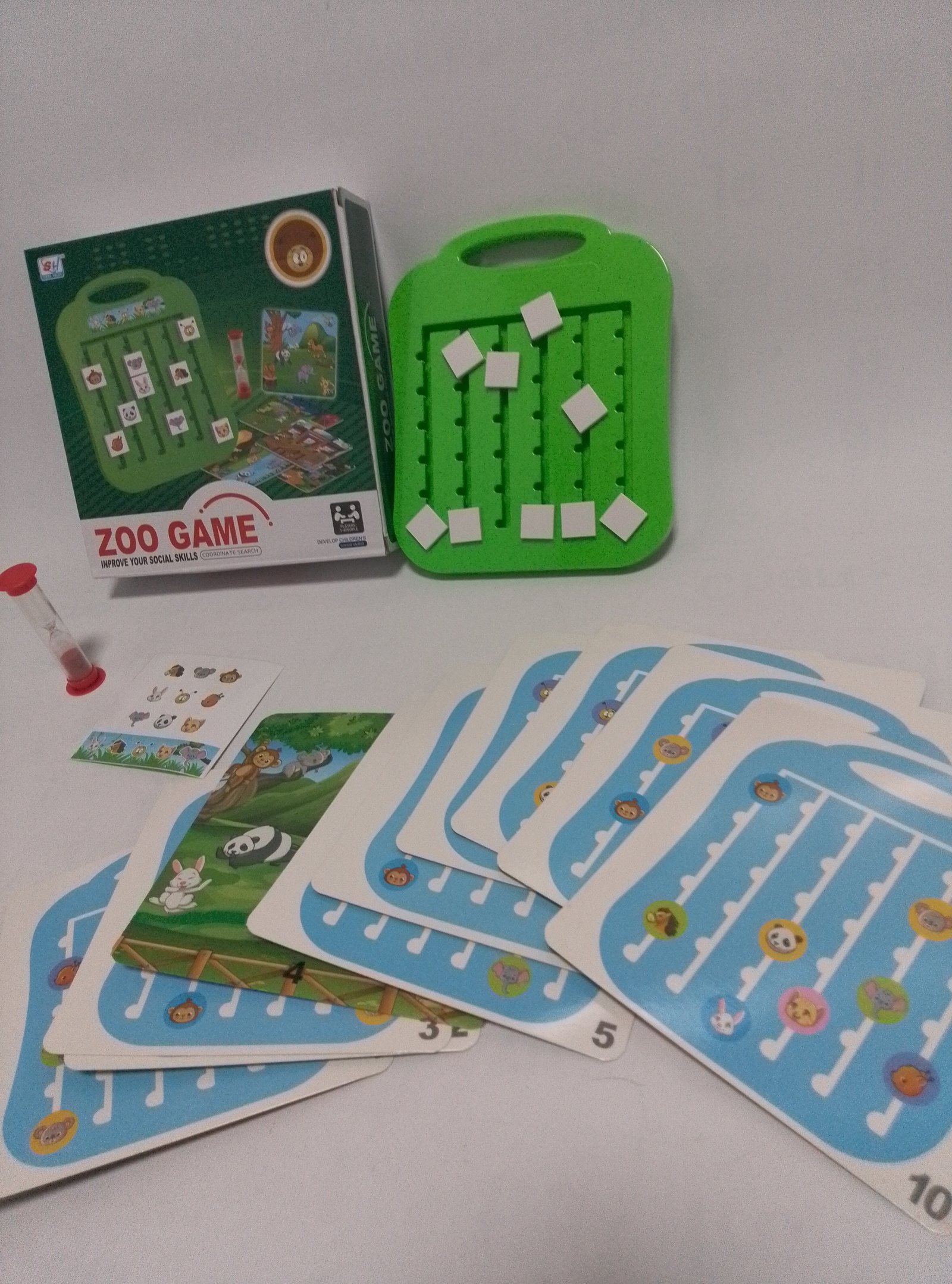Zoo Game هي لعبة ذكاء ممتعة تعتمد على البطاقات والتنسيق بين مواقع الحيوانات على اللوحة. تساعد الأطفال على تطوير التركيز، الملاحظة، والقدرة على تتبع التعليمات بطريقة بسيطة وشيّقة.